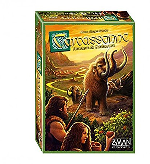 Hunters and Gatherers is a game in the Carcassone family, but unlike the original, it’s set in the Stone Age. Players build landscapes filled with huts, rivers, meadows, fishermen, and the namesake hunters and gatherers, all worth points. The player with the most points wins.