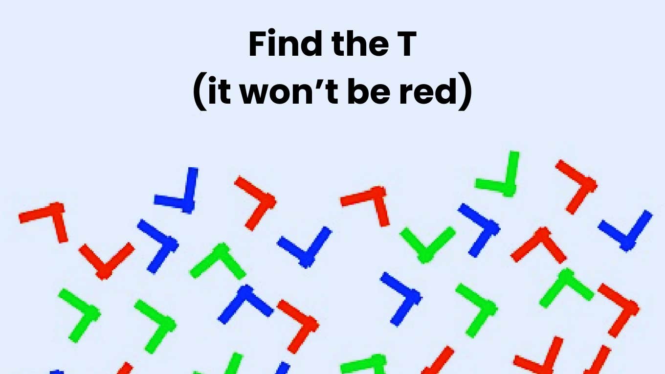 We'll even give you a hint to make it really easy for you: The 'T' won't be red. If you can find the letter in under 10 seconds, then you'll know that you're gifted (and truly special).